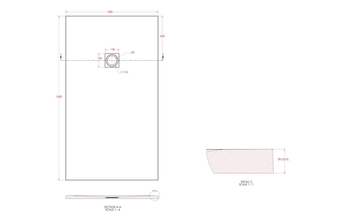 •Dimensions: H 25 x W 1600 x D 900mm