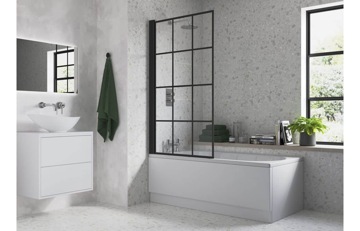 800x1500mm Single Straight Bath Screen (6mm) - Black Framed