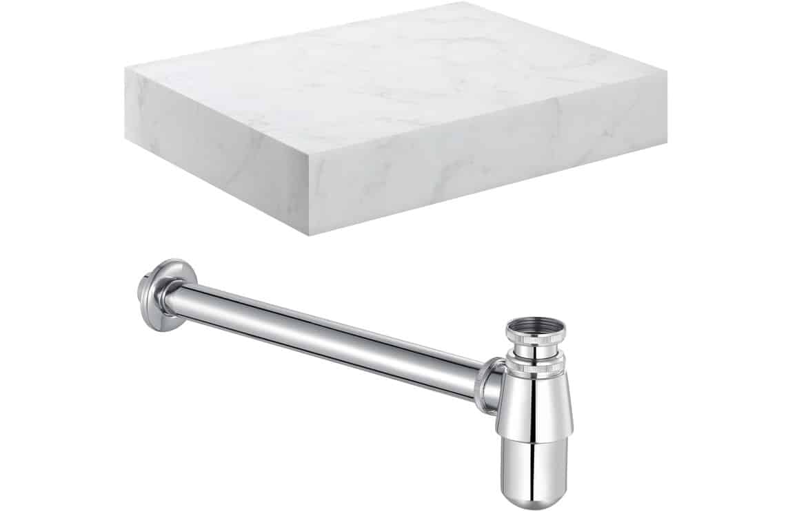 Be the first to review “Ashima 600mm Wall Hung White Marble Basin Shelf & Chrome Bottle Trap”