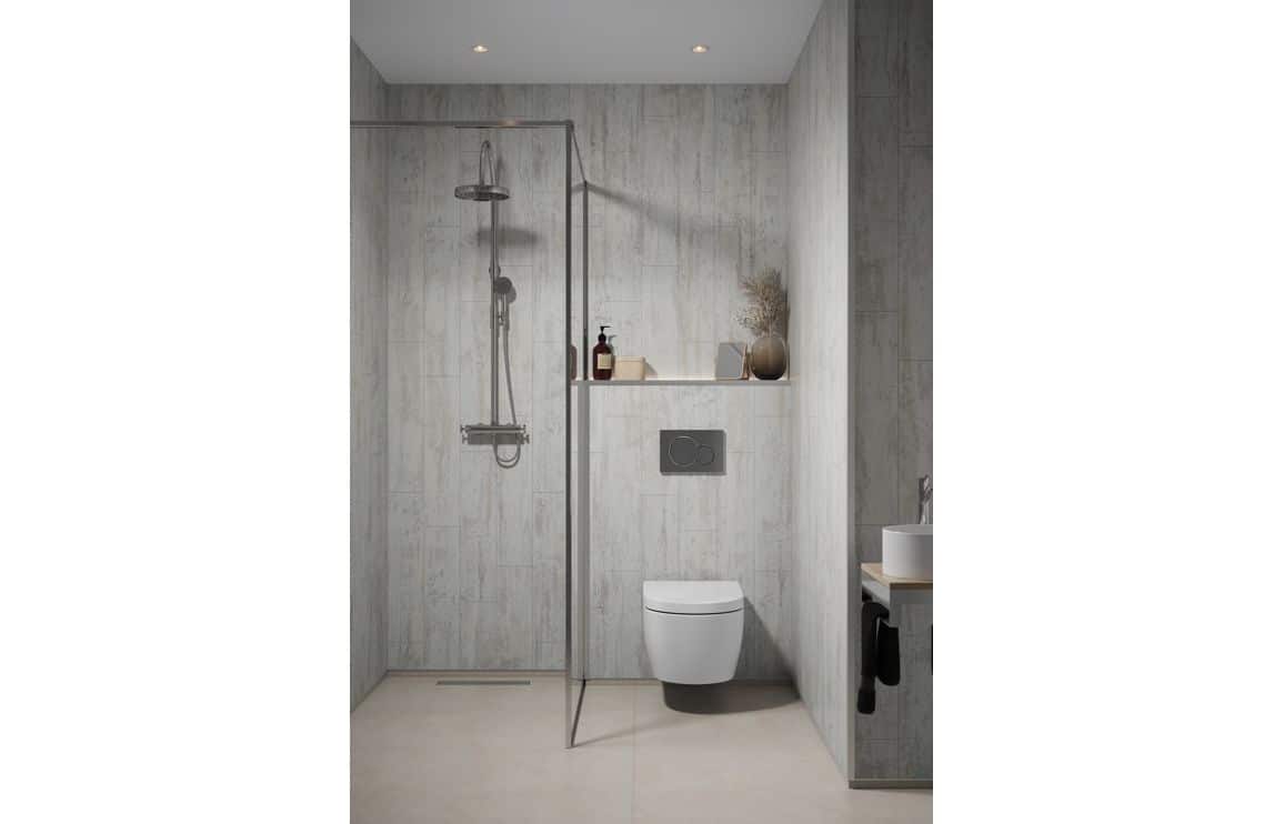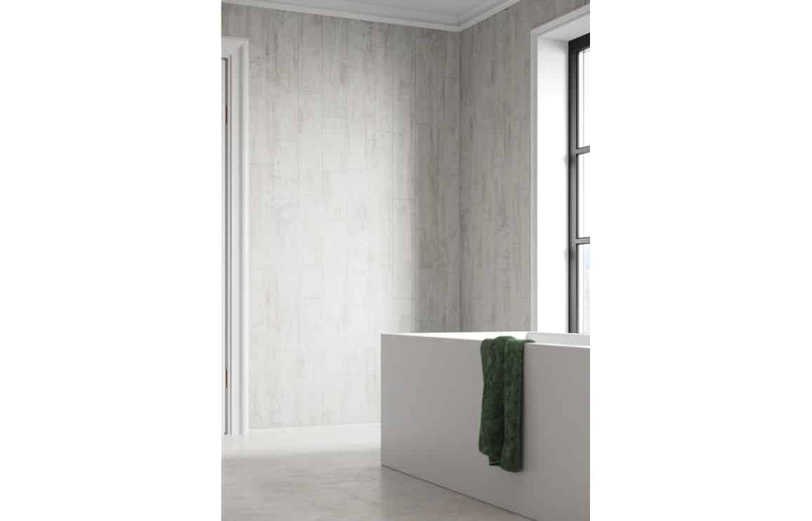•That popular upcycle finish now available as a super stylish wall panel in a Vertical effect! This design looks great as a feature wall in combination with white satin panels – or when used for a whole room!