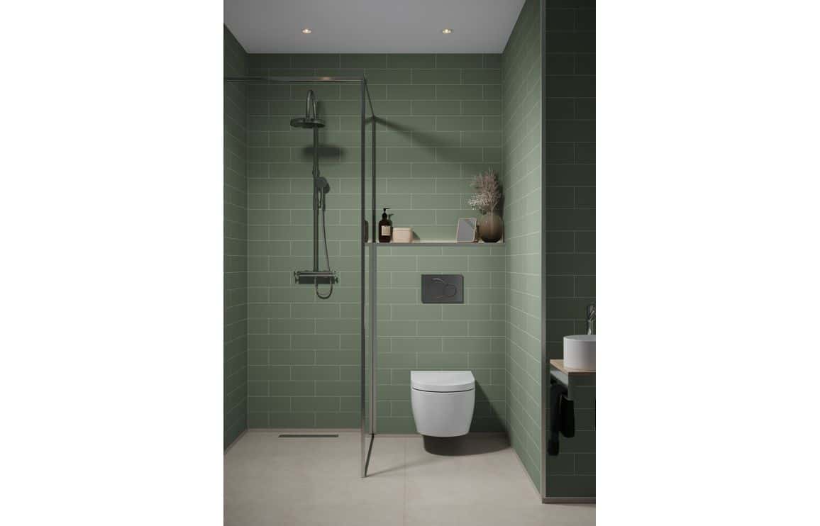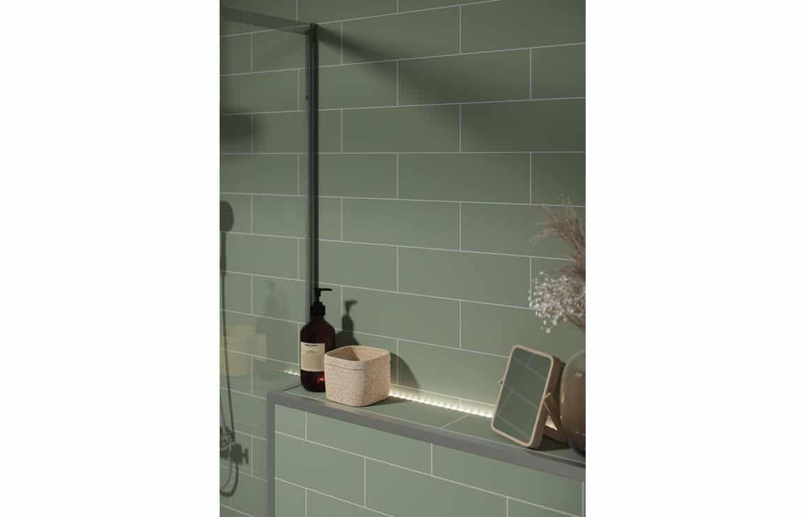 •A beautiful green inspired by French olive groves. Available in Metro Brick tile effect - calming and modern with virtually invisible join lines!