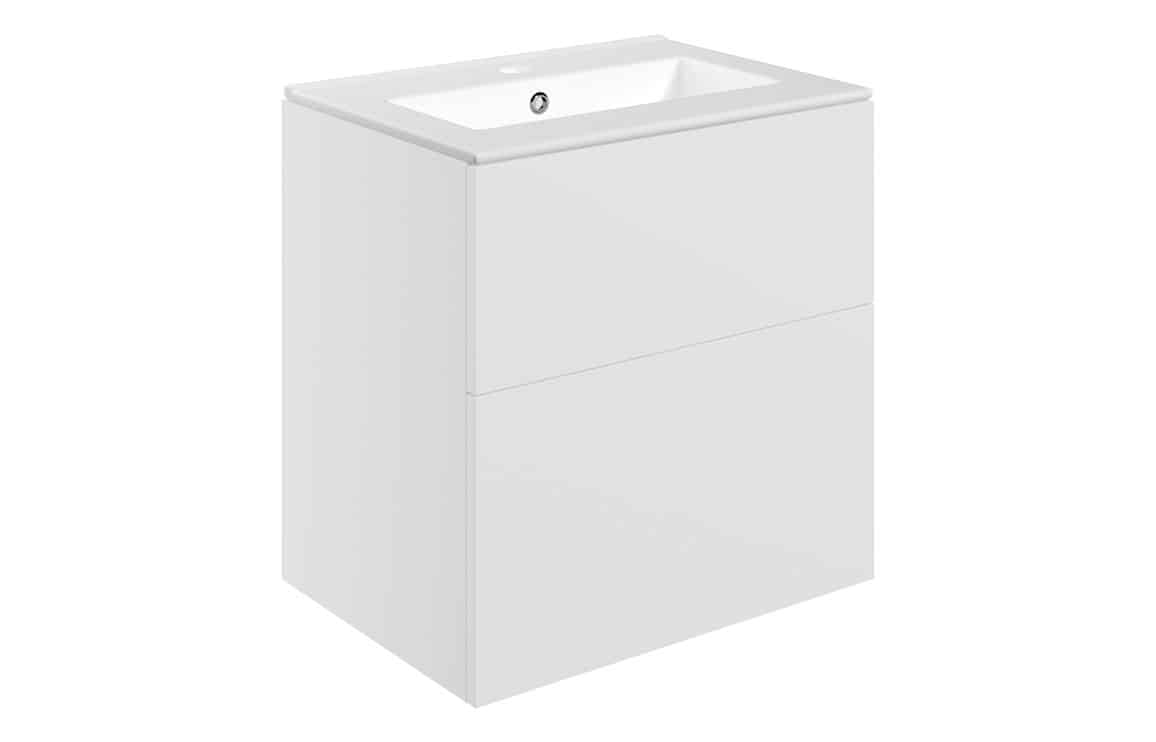 Horseshoe Bend 610mm Wall Hung 2 Drawer Basin Unit & 1TH Basin - Matt White