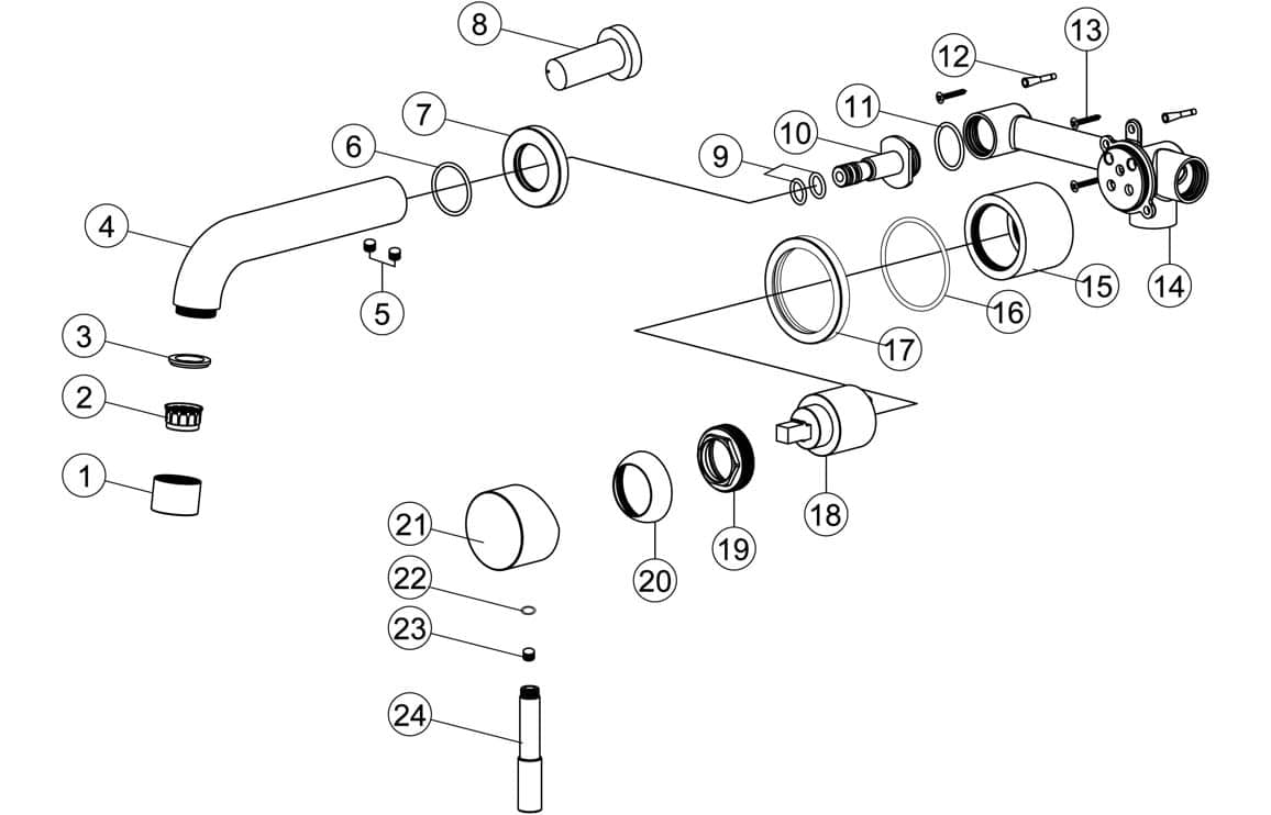 •Wall to end of spout length: 155mm