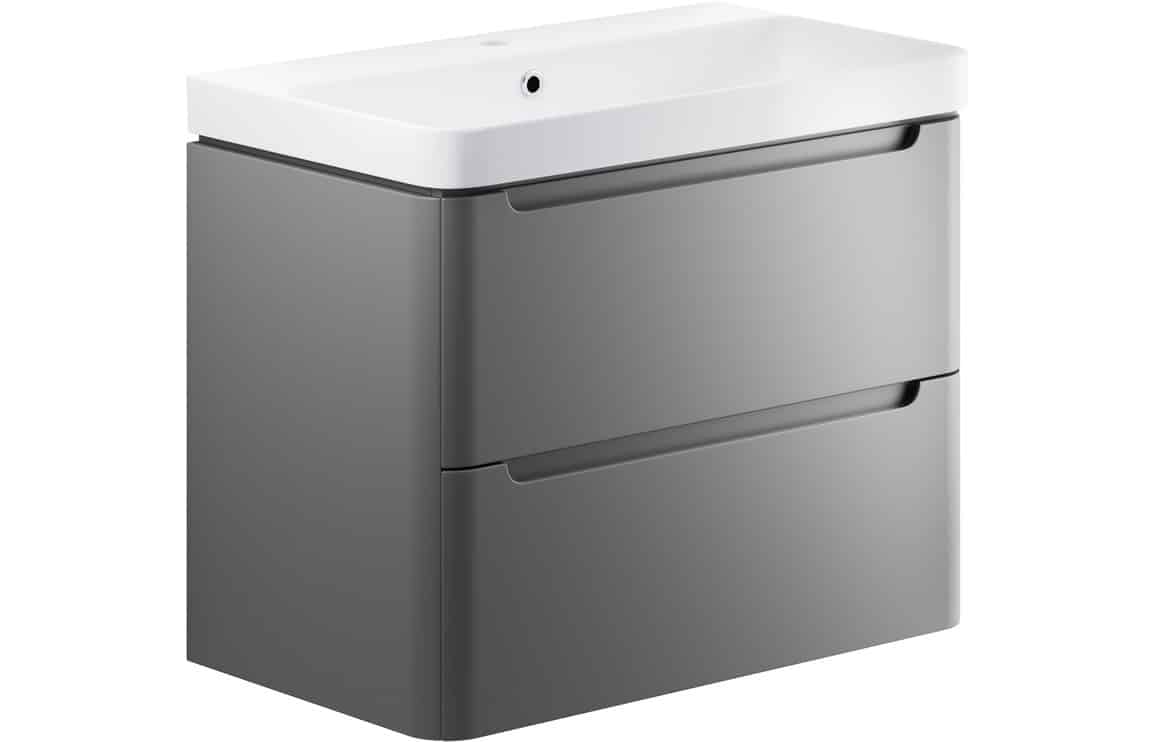 Nanya 805mm 2 Drawer Wall Hung Basin Unit - Matt Grey