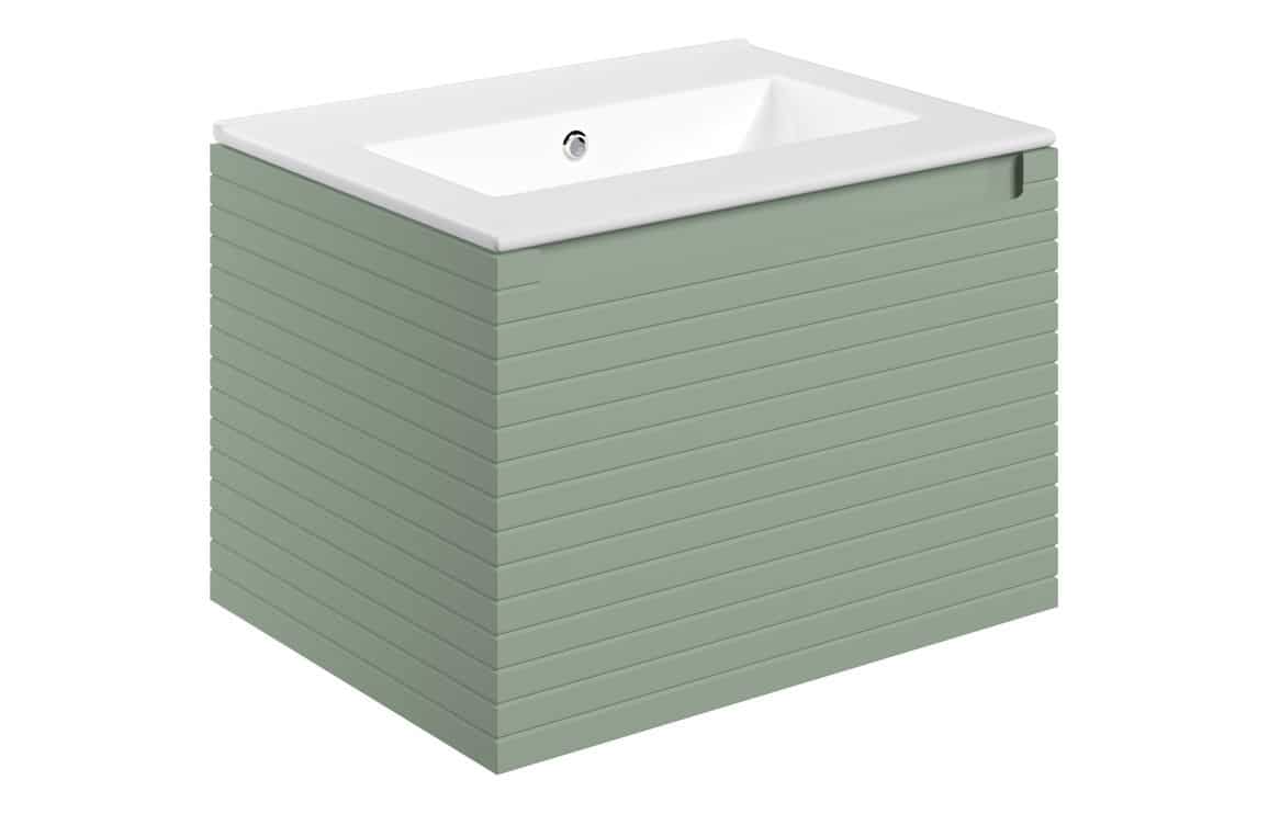 Old Harry 615mm Wall Hung 1 Drawer Basin Unit & 0TH Thin Edge Basin - Matt Willow Green