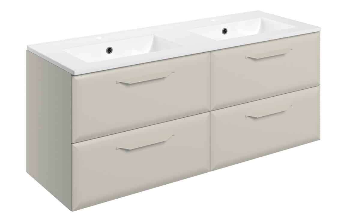 Penni 1210mm Wall Hung 4 Drawer Basin Unit w/2TH Basin - Matt Latte