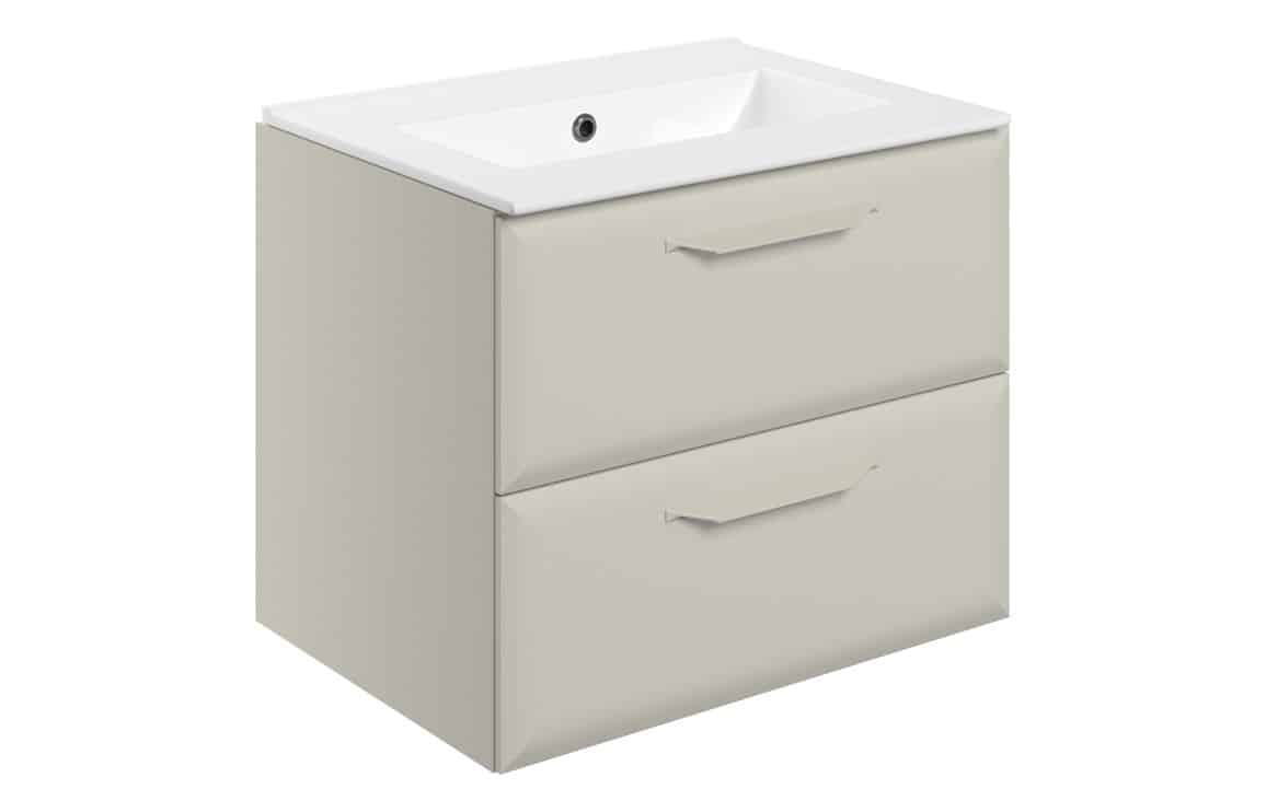Penni 615mm Wall Hung 2 Drawer Basin Unit w/0TH Basin - Matt Latte