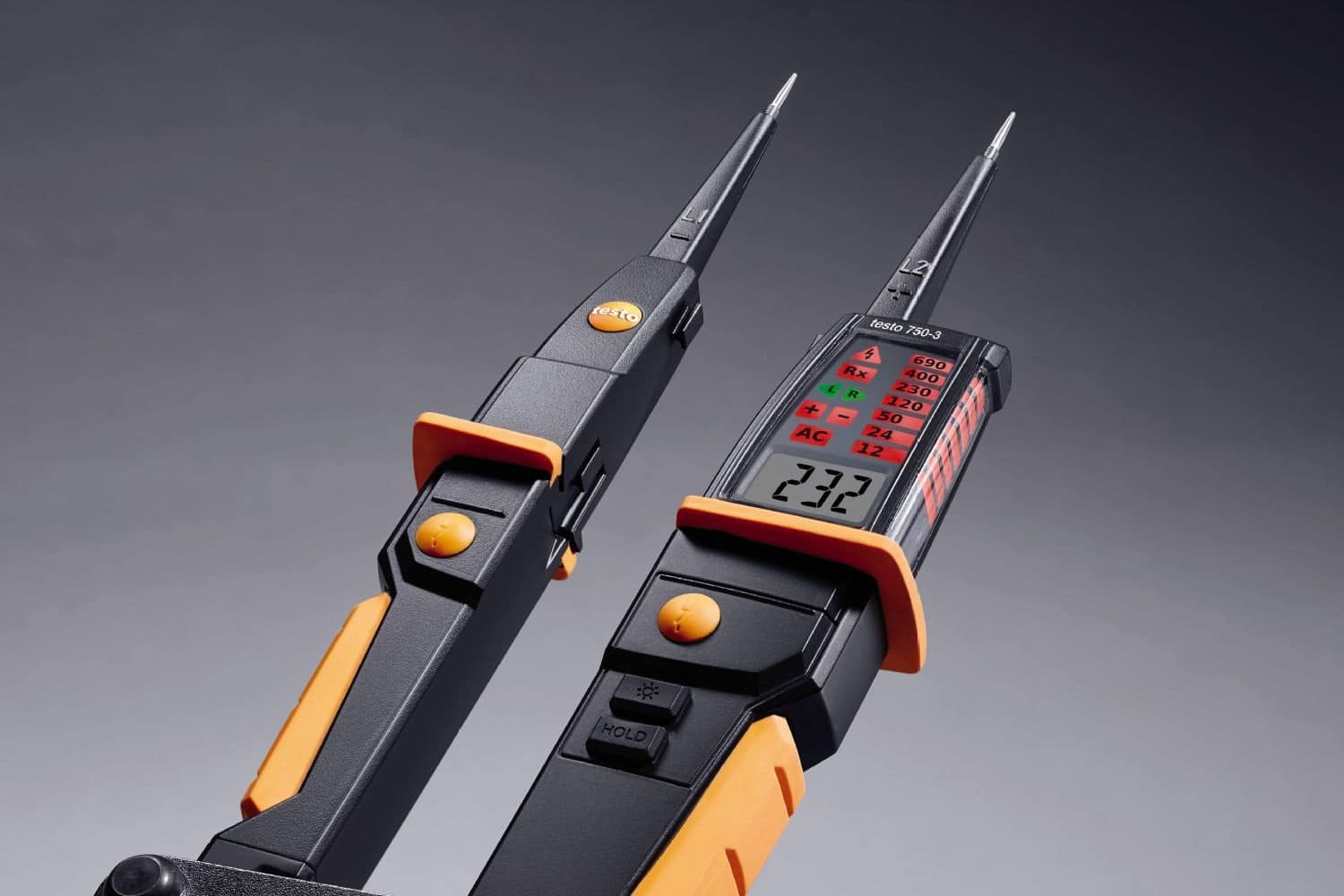 The three models in the testo 750 voltage tester family are the first instruments with an all-round LED display. The display can be seen from any position and guarantees an ideal voltage indication thanks to its unique fibre optics. All three models meet the latest voltage tester standard EN 61243-3:2010 and meet CAT III 1000 V CAT IV 600 V safety standards. They have the most important functions for voltage testing, continuity testing and rotating magnetic field measurement.