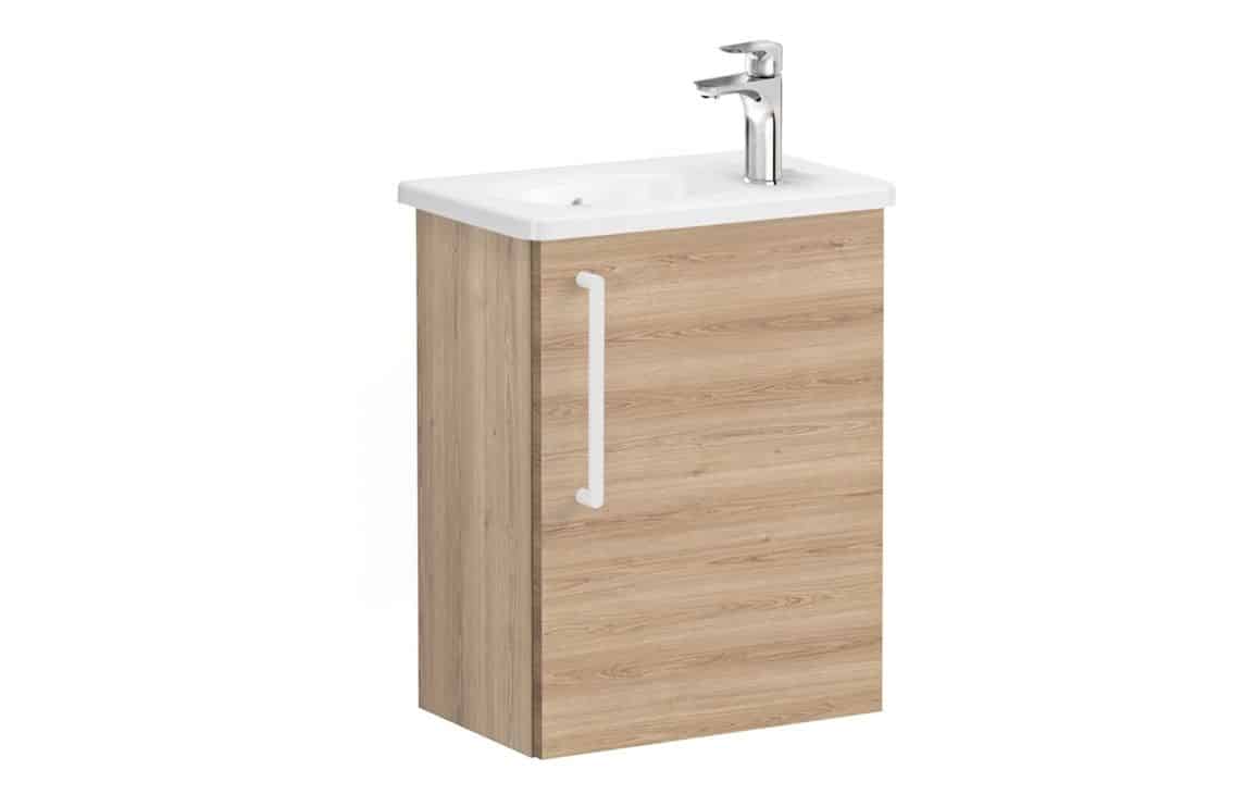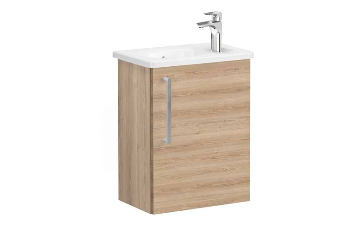 VitrA Zentrum Compact 45cm 1 Door W/H Washbasin Unit (RH Hinge) - Natural Oak