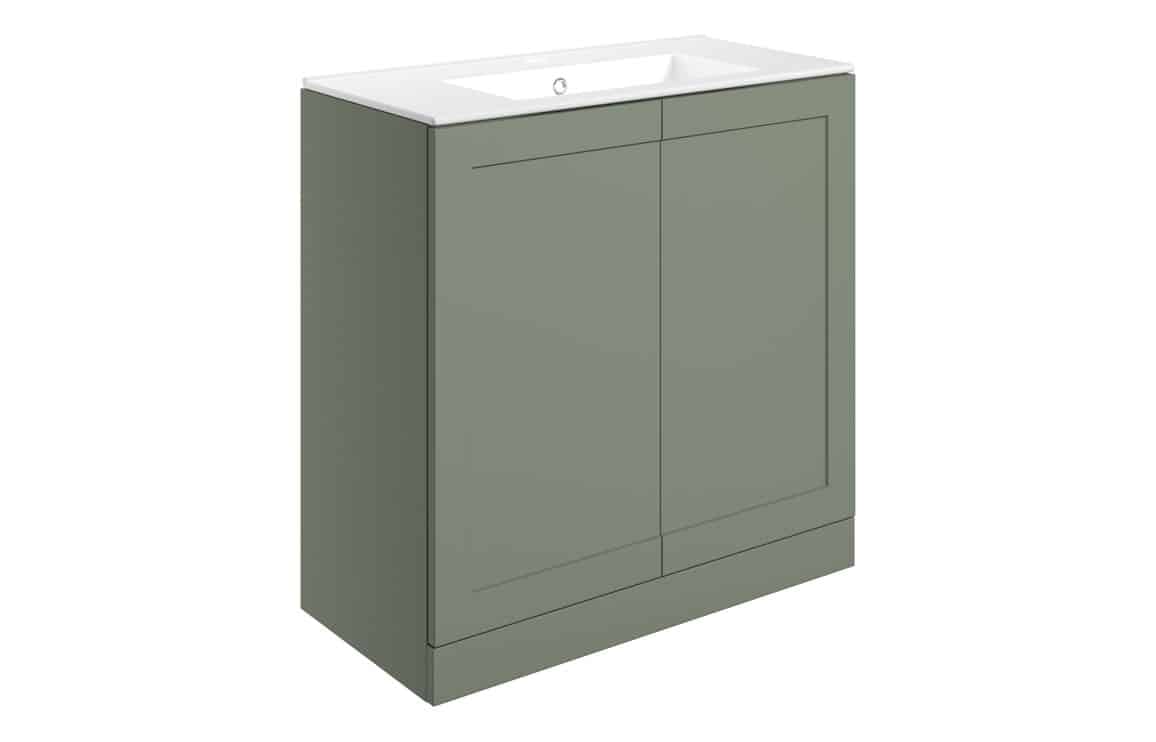 White Cliffs 815mm Floor Standing 2 Door Basin Unit & Basin - Matt Reed Green